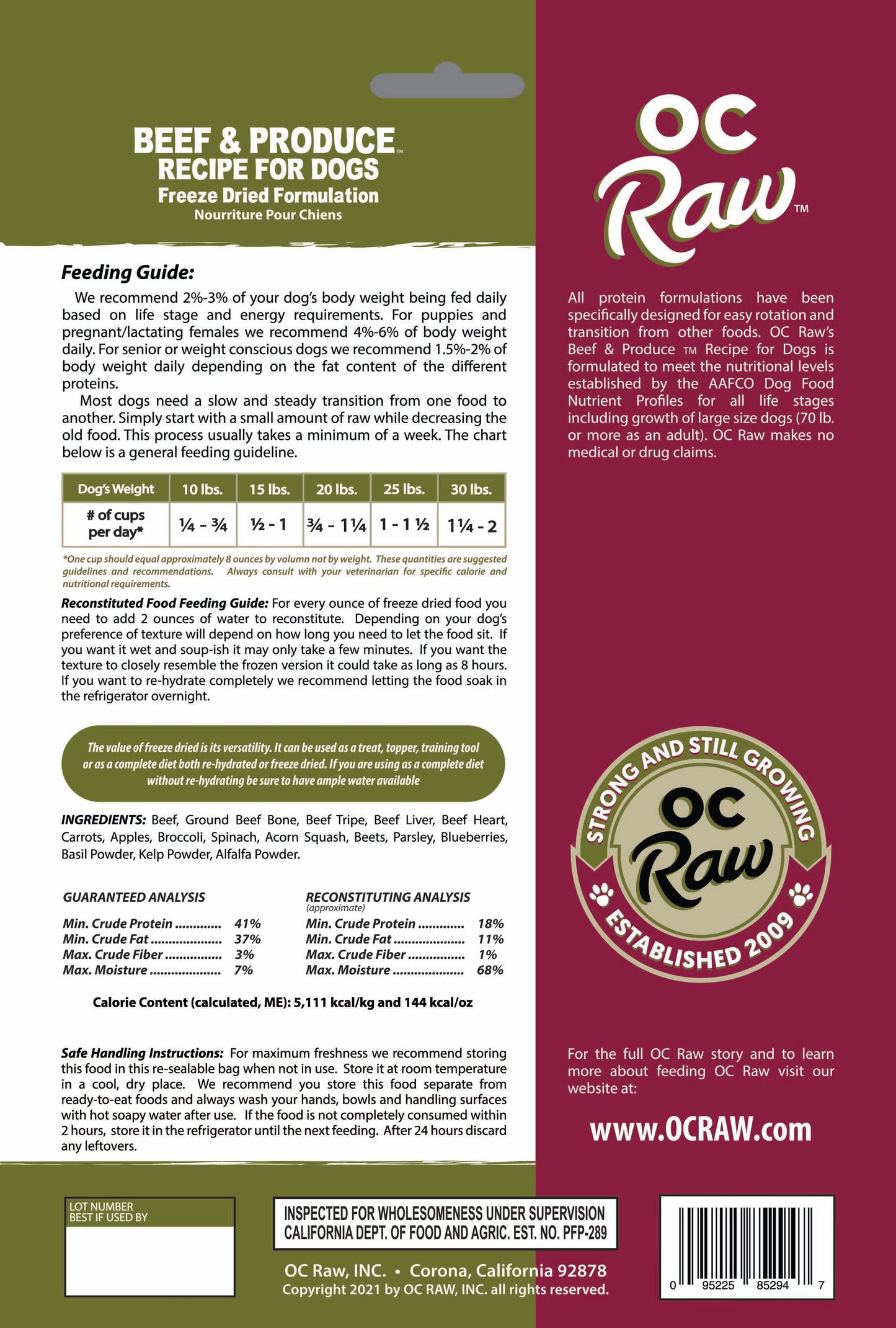 Beef Ground, Beef Bone, Beef Tripe, Beef Liver, Beef Heart, Carrots, Apples, Broccoli, Spinach, Acorn Squash, Beets, Blueberries, Basil Powder, Kelp Powder, Alfalfa Powder