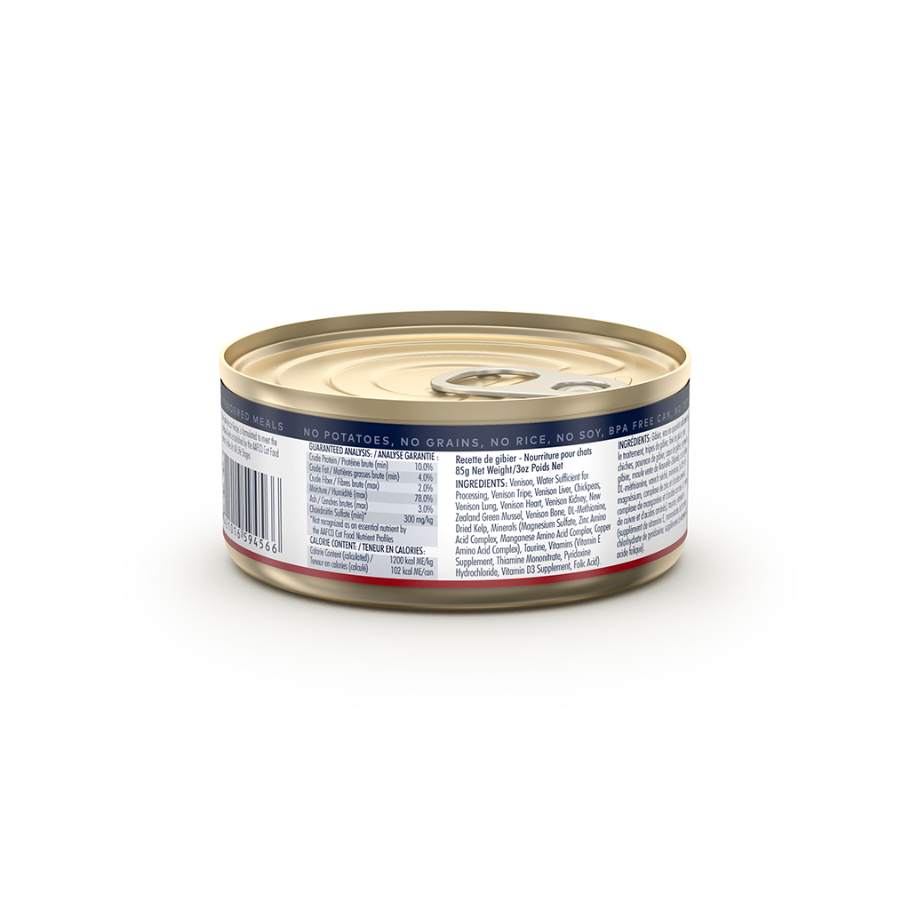 ZIWI® Peak Venison is a novel, single-protein ideal for cats of all breeds and life stages, particularly those with food sensitivities. Every can is loaded with free-range venison, ethically raised on pastures of lush and native grasses in the remote valleys of New Zealand’s South Island. Crafted in small batches without high glycemic ingredients or artificial binders, ZIWI canned cat food makes meal time exciting – and your cat is guaranteed to enjoy each and every bite.